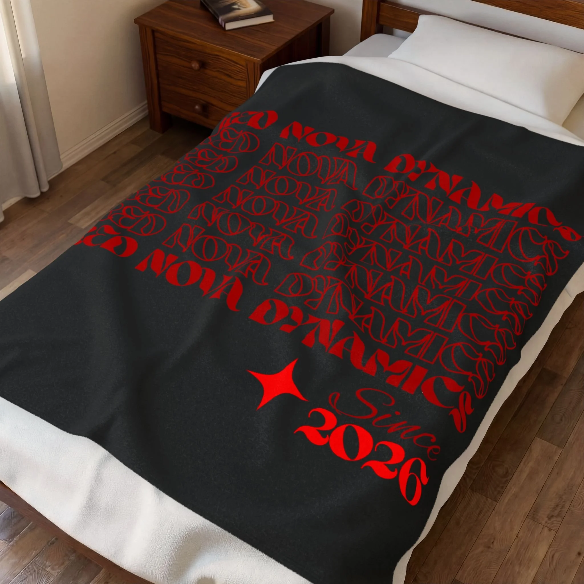 Wrap yourself in a velvety, band-inspired throw that reads like a tour poster for late-night drives and rooftop hangouts. Deep black fabric holds bold red typography—stacked repetitions of “RED NOVA DYNAMICS” with a small starburst and “Since 2023”—so the design pops whether draped over a couch or folded at the foot of a bed. The plush surface feels soft against skin, providing quiet warmth during chilly nights, studio sessions, or when you’re paging through zines and sketchbooks. This blanket pulls together indie energy and minimalist graphic style, turning an ordinary moment into something cinematic and quietly electric.