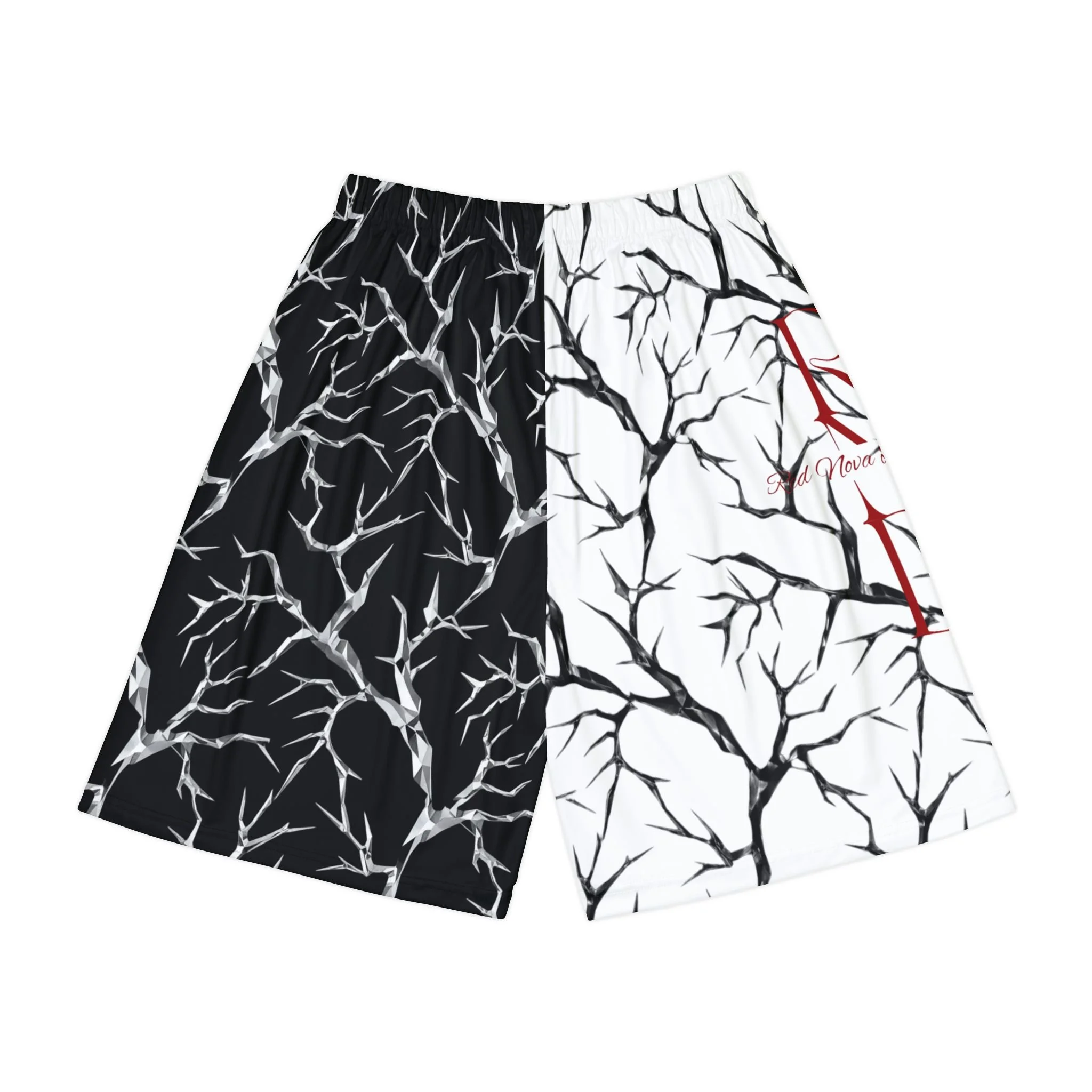 Half-and-half sports shorts with a bold monochrome branch pattern that feels both stark and graceful. The contrasting black-and-white panels create graphic impact while thin, organic branch veins travel across the fabric, giving a slightly raw, nature-meets-graphic look. Lightweight and quick-drying, these shorts move with you whether you’re training, skating, or just leaning into an edgy street outfit. The elastic waistband and drawstrings let you dial in the fit, and the clean, pocketless silhouette keeps the focus on the dramatic print. Wear them when you want to blend athletic ease with an artful, slightly rebellious vibe.